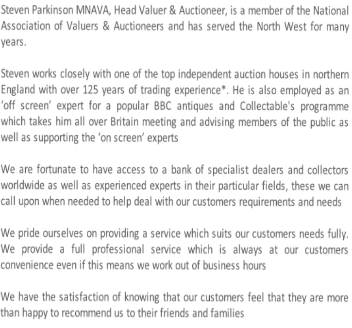 An introductory fee may be paid to the company by the company we recommend, if this is the case you will be informed prior to sale, this will not effect the decision on which selling means is recommended. All recommendations are only suggestions for your consideration and you should ask all questions needed to make an informed decision. This website and its contents are the sole property of S.Parkinson Auctioneers & Valuers.